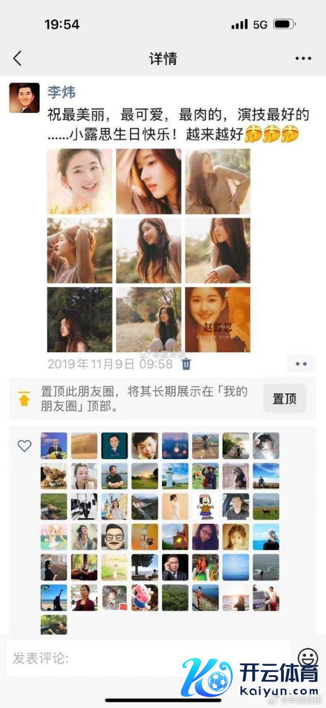 李炜还晒出了我方从 2016 年签约赵露想于今,我方在一又友圈发过的关注祝愿赵露想的实质。