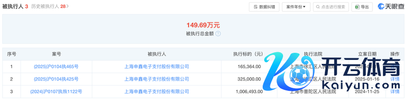 上海申鑫电子支付股份有限公司(下称“申鑫支付”)波及两起案件,上海市徐汇区东说念主民法院永诀于1月16日以及17日将申鑫支付列入了被实际东说念主,实际地点约49.04万元。此外,北京爱农驿站科技服务有限公司月内有十余起被实际,实际金额在7464元至4868.56万元不等。