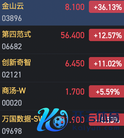 2月3日音书,港股AI看法股集体拉升,金山云涨超36%,第四范式涨超12%,改进奇智涨超11%,商汤涨超5%。
